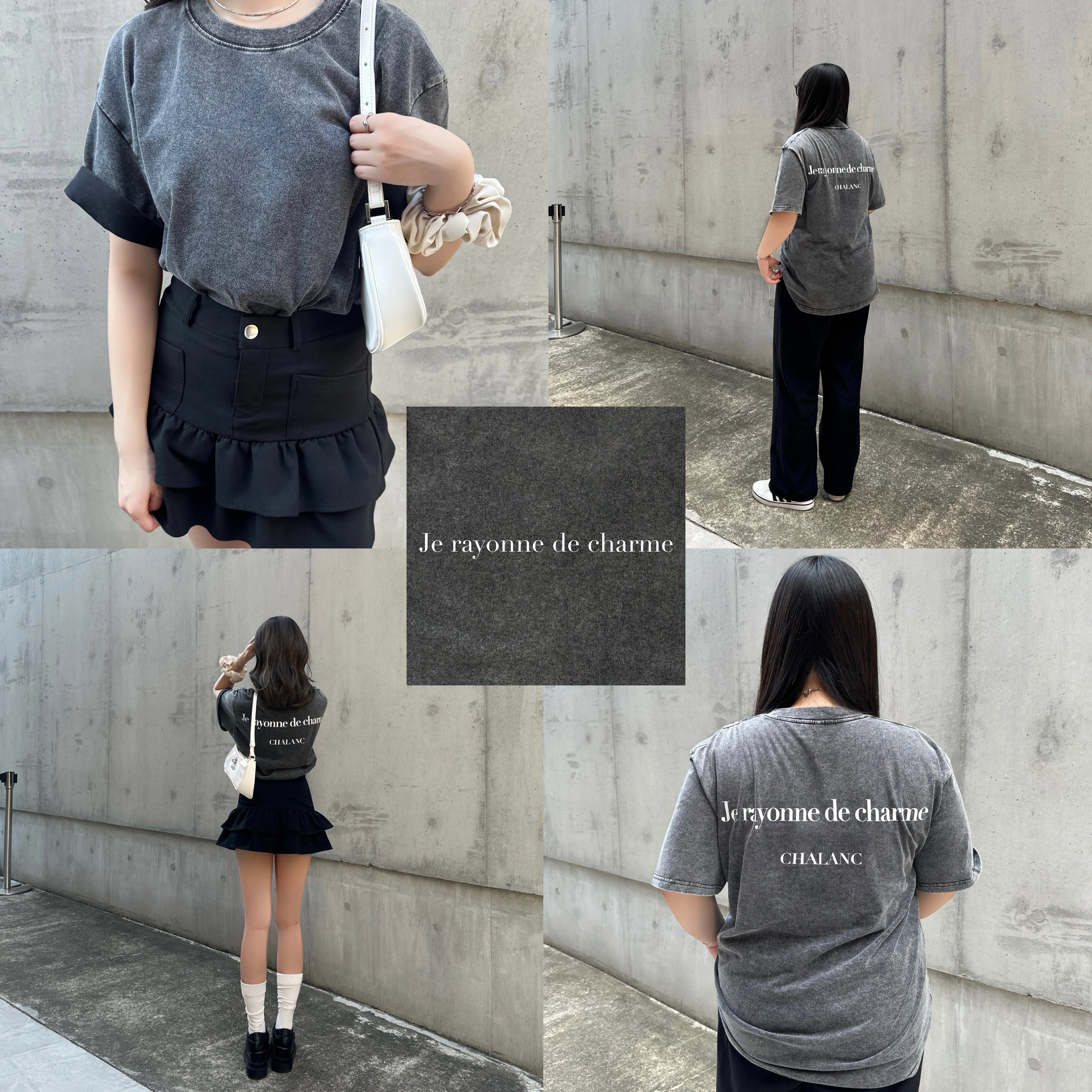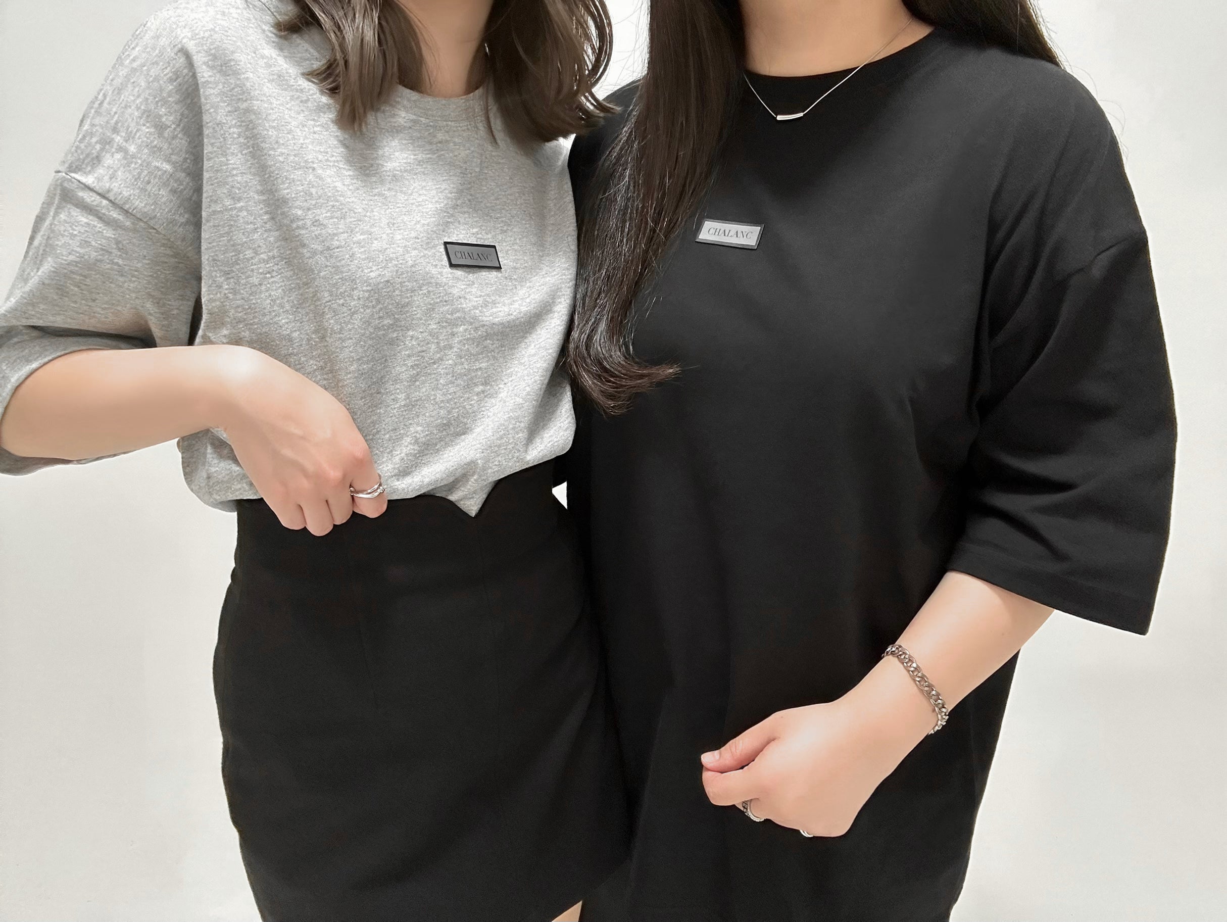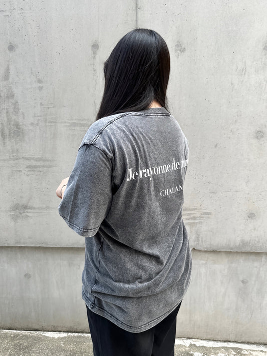 シックなボディカラーに、胸元のブランドロゴ「CHALANC」のワッペンがアクセントとなるオーバーサイズのTシャツです。