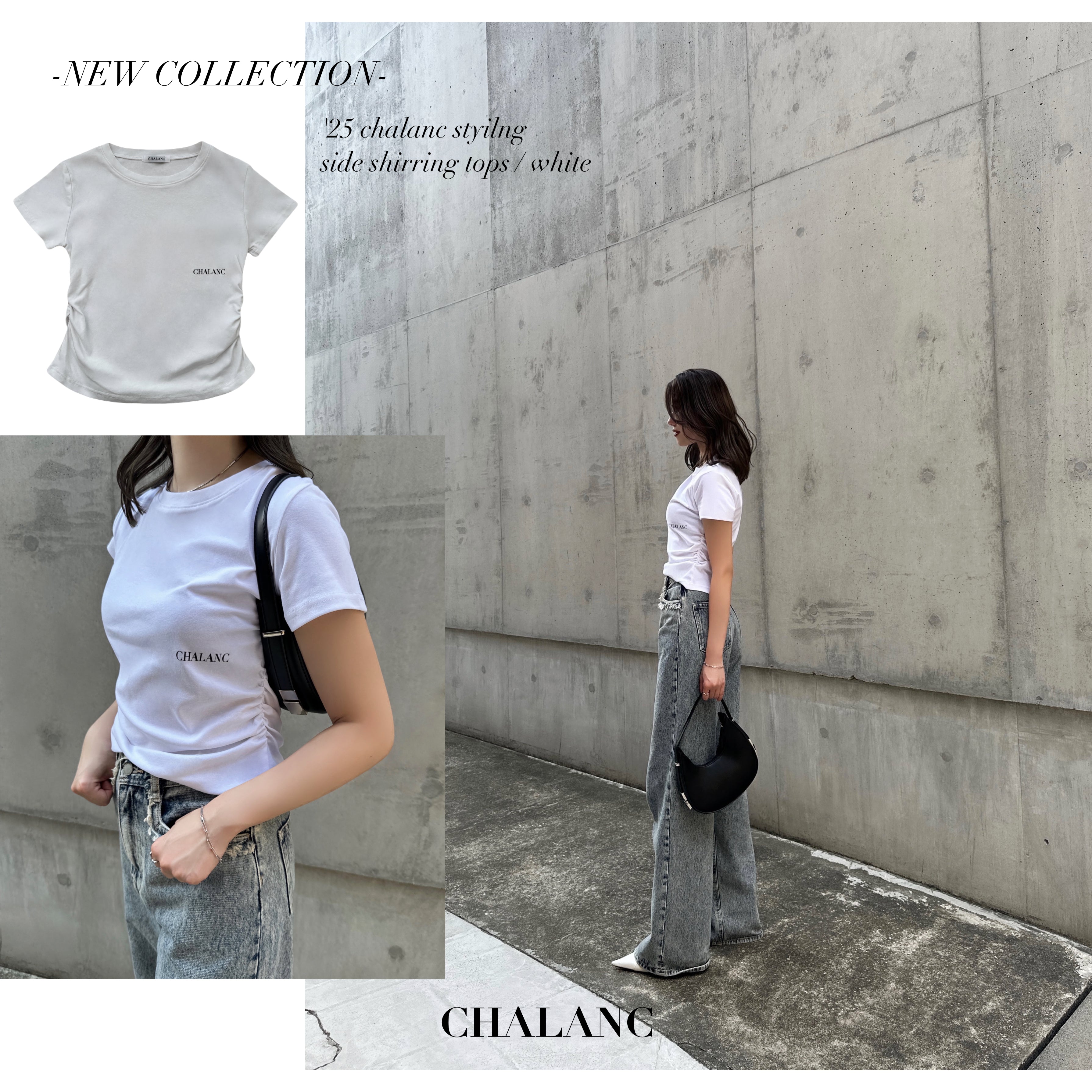 SIDE SHIRRING TOPS / WHITE